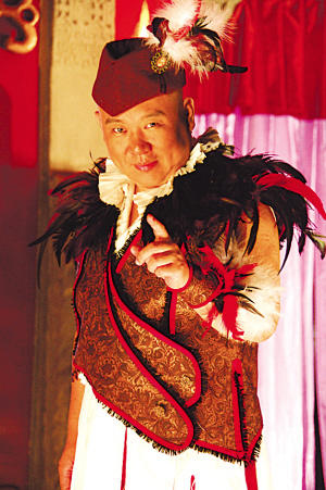 內(nèi)地全新翻拍的文化喜劇《三笑之才子佳人》4月底上映在即,昨日片方發(fā)布了一組新鮮曝光的劇照。其中郭德綱在片中飾演的唐伯虎造型頗令人意外。他領(lǐng)銜主演的唐伯虎,雖為風(fēng)流才子,長袍加身但仍然極少戴書生帽,而仍然以招牌光頭來演繹這個“憨厚版唐伯虎”。但影片一開始,這個“憨厚版唐伯虎”由于需要以歌傳情,遇見秋香時,正在舞臺上表演個人演唱會,因此這一幕的造型頗為突破:只見郭德綱打扮成現(xiàn)代版搖滾歌手模樣,頭上還帶著長長的雉尾做成的帽子,更有一種歐洲宮廷味道。郭德綱對這一搞怪造型頗為滿意,說:“服裝設(shè)計時融入了很多加勒比海盜的靈感,狂野的造型,說明有一種文人也瘋狂的感覺”! ●R 彧