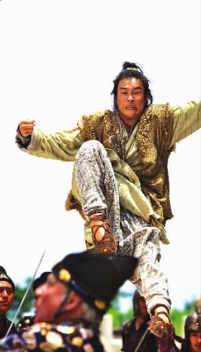 小沈陽在《大笑江湖》中飾演一名平凡小鞋匠,機緣巧合之下練就絕世武功,變成了一個勇于承擔(dān)的男子漢。既然是大俠當(dāng)然要會“飛”,而動作指導(dǎo)程小東也是個“大好人”,因此讓小沈陽開心地在天上飛來飛去一整天,圓了他飛天小俠的夢。程小東表示:“小沈陽作為二人轉(zhuǎn)演員還是有些功夫底子的,否則不可能吊在半空中一天還這么瀟灑,換作別人早送醫(yī)院了!辈贿^由于橫店天氣過于炎熱,小沈陽一遍遍拳打腳踢、跳躍騰挪,最終虛脫不起,也差點送醫(yī)院。記者邱晨通訊員趙佳