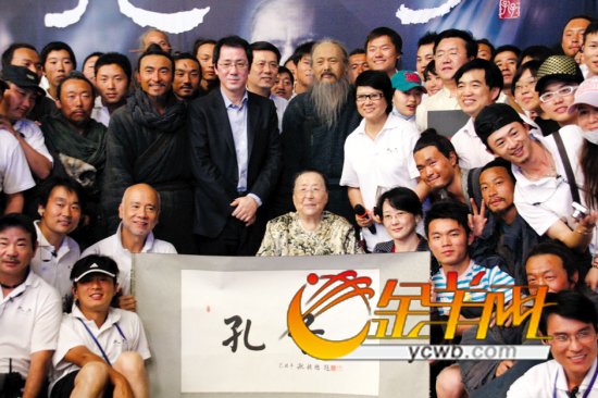 嚴(yán)謹(jǐn)?shù)目桌嫌谩爸芡尽眮?lái)稱(chēng)呼周潤(rùn)發(fā),引起現(xiàn)場(chǎng)一片善意的笑聲。孔老還表示自己看過(guò)“周同志”之前的很多電影,是他的影迷,因此當(dāng)初知道是由周潤(rùn)發(fā)來(lái)扮演孔子,她就松了口氣。這次親臨現(xiàn)場(chǎng)看周潤(rùn)發(fā)演戲,更覺(jué)得他演的孔子形神兼?zhèn)洌踔帘茸约寒?dāng)初想像的更加出色。她跟周潤(rùn)發(fā)反復(fù)強(qiáng)調(diào):“讓你來(lái)演孔子,是不會(huì)錯(cuò)的!” 但沒(méi)能見(jiàn)到扮演南子的周迅和扮演孔妻的張凱麗,孔老略表遺憾。