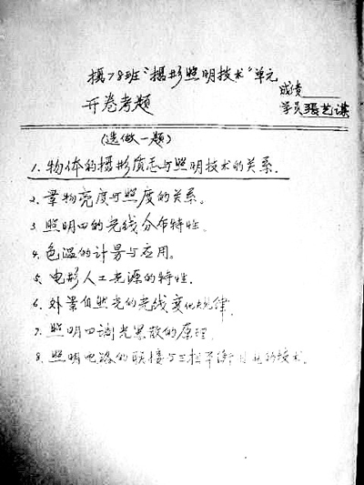 被曬在網(wǎng)上的這份答卷是“攝78班攝影照明技術(shù)單元”的開卷考題,在學(xué)員一欄即填著“張藝謀”。因當(dāng)年沒有電腦只有鋼筆,經(jīng)記者對比張藝謀手跡,確為張藝謀當(dāng)年所答。長達(dá)3頁的答卷,沒有得到其電影那樣的“爭論”,而得到了網(wǎng)友一片贊譽(yù),“真不是一般的整齊啊,和印刷出來的一樣,不打格也寫不歪……”“字如其人”、“規(guī)矩、整潔”、“膜拜加學(xué)習(xí)”,甚至有網(wǎng)友說,“張藝謀應(yīng)該來寫字,創(chuàng)造藝謀字體當(dāng)字帖,完全可以比肩徐靜蕾嘛!” (華商報(bào)記者 唐愛明)