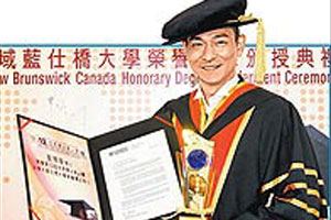 中新網(wǎng)5月5日電 綜合媒體消息,劉德華昨日獲“世界杰出華人獎”和“加拿大紐賓士域藍(lán)仕橋大學(xué)榮譽(yù)博士”雙料肯定,而這次的“獲封”也讓劉天王的學(xué)歷從高中直接級跳到博士,一圓當(dāng)年求學(xué)夢。