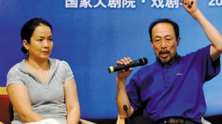最激動的是飾演主角“培爾”的孫海英,打扮隨意的他剛拿起話筒時語調(diào)十分平靜,還被一旁的老伴呂麗萍調(diào)侃“說話像領導”。但談到演《培爾·金特》的感受,他的語調(diào)頓時激動起來,更大嘆“話劇已死”:“現(xiàn)在的戲劇都是在作假,互相說假話。人們都太浮躁,明明看不懂我們這部戲,只是看個熱鬧,到半場就回家了,還愣說看得懂———你明白個屁呀!什么都不明白!藝術不是因為你懂才來的,是因為不懂才來的,看不懂你就得學!我們不需要迎合大眾,你愛來不來!