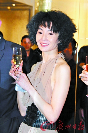 張曼玉的低V露背禮服是Dior今年秋冬系列,黑色粗腰帶延續(xù)品牌高級訂造服的騎士風。她與設(shè)計師Marino非常投契,纖腰任攬。