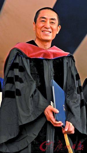 當(dāng)?shù)貢r間5月24日上午,在耶魯大學(xué)2010年度畢業(yè)典禮上,中國導(dǎo)演張藝謀獲頒該校“藝術(shù)學(xué)榮譽(yù)博士學(xué)位”。當(dāng)天,張藝謀身著耶魯大學(xué)博士服,出席了榮譽(yù)博士頒發(fā)儀式。他表示,能獲得這樣的肯定很不容易,作為一個中國人,能擁有這樣的榮幸非常高興:“今后我仍會將精力集中在電影創(chuàng)作上,對我來講,拍電影永遠(yuǎn)是第一位的,我好像也最適合做這個工作,所以我爭取每一年都有新作品”。