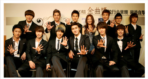 “朝鮮日?qǐng)?bào)”消息, “第20屆臺(tái)灣金曲獎(jiǎng)?lì)C獎(jiǎng)典禮”于前天下午6時(shí)30分在臺(tái)北小巨蛋舉行。出席頒獎(jiǎng)典禮的Super Junior不愧為席卷臺(tái)灣的《Sorry Sorry》熱風(fēng)的主角。在頒獎(jiǎng)典禮前舉行了紅地毯活動(dòng),盡管是雨天,仍來了1000多名粉絲捧場。在Super Junior經(jīng)過的各個(gè)通道旁都能看到很多舉起寫有成員名字的牌子和藍(lán)色氣球進(jìn)行歡呼的粉絲。