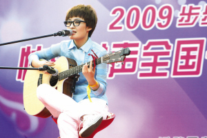 曾:嗯,最初是寫(xiě)歌詞,當(dāng)時(shí)是初三,因?yàn)榭荚噳毫Υ,就自己涂涂?huà)畫(huà)寫(xiě)出來(lái)了。開(kāi)始有曲譜配歌詞是高三的時(shí)候,會(huì)彈吉他了!秾W(xué)習(xí)×××的日子》(由于她說(shuō)話(huà)聲音實(shí)在太綿羊,重復(fù)了3次,記者還是沒(méi)聽(tīng)清楚歌名),是一首校園歌曲,這是第一首完整的歌,也是完整的曲,就為了鼓勵(lì)考英語(yǔ)專(zhuān)業(yè)四級(jí)的人們,加油、努力,只唱給自己的朋友聽(tīng)過(guò)。大家覺(jué)得,還行吧。