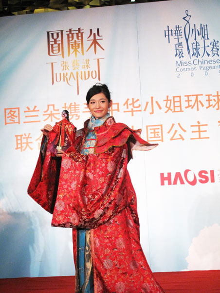 鳥巢版《圖蘭朵》是著名導(dǎo)演張藝謀率北京奧運會開幕式原班人馬打造的又一鴻篇巨制,中國公主是普契尼《圖蘭朵》中的經(jīng)典,也是這部歌劇塑造的重點人物。首演準(zhǔn)備工作進(jìn)入倒計時之際,《圖蘭朵》攜手“中華小姐環(huán)球大賽”選拔出了“中國公主”代言這部曠世著作。鳳凰衛(wèi)視主持人沈星主持了當(dāng)天的活動。