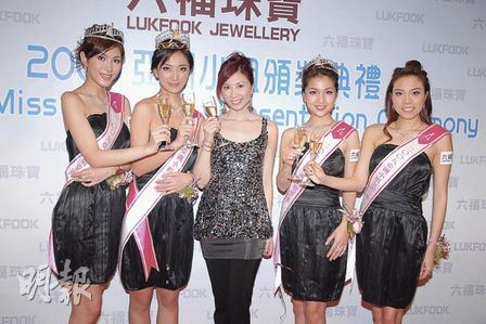 中新網(wǎng)11月6日電 出爐亞姐冠軍許瑩、亞軍王,、季軍許嘉慧及友誼小姐張加慧,昨天中午出席后冠及首飾領(lǐng)獎活動。港姐楊寶玲也專程回港為亞姐冠軍加冕。