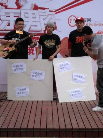 今年快男注定與眾不同,不僅“偽娘”選手備受關(guān)注,而且連“反偽娘”選手也不失風(fēng)采,上周快男土豆網(wǎng)分賽區(qū)一組特殊選手C-BLOCK組合因在比賽現(xiàn)場打出 “保護(hù)純爺們 消滅偽娘族”的參賽口號,而備受網(wǎng)友關(guān)注并被封為“反偽娘斗士”,而有關(guān)這場“偽娘”與“反偽娘”的對決,昨日舞美師在博客爆出猛料:“著姐入圍前三甲不是問題,首先是因?yàn)槲矍虻男枰,這也是湖南衛(wèi)視選秀常用手段;不僅如此,劉著也已經(jīng)秘密簽約湖南衛(wèi)視旗下長沙天娛公司”。而針對舞美師的爆料內(nèi)容,記者也從網(wǎng)上了解到該組合相關(guān)資料,首先該C-BLOCK組合來自長沙,在當(dāng)?shù)匾恢毙∮忻麣,?shí)力不俗,去年多次參加湖南衛(wèi)視王牌節(jié)目《快樂大本營》、《成年禮》、《8090》等節(jié)目,而關(guān)于“偽娘”劉著網(wǎng)上開始有人爆出其與湖南衛(wèi)視關(guān)系甚密,這些相關(guān)信息與舞美師爆料內(nèi)容十分契合。為進(jìn)一步求證舞美師的爆料內(nèi)容,記者向湖南衛(wèi)視快男導(dǎo)演組一編導(dǎo)求證,他表示:“不要相信舞美師博客內(nèi)容,純屬造謠,快男比賽保證公平選拔”! 漪