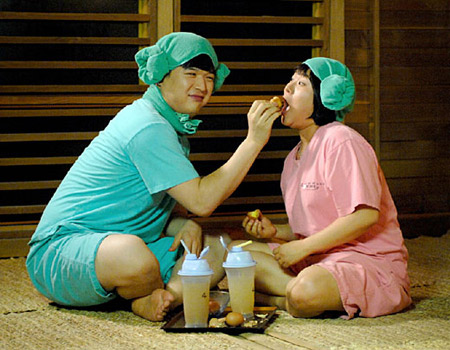 據(jù)韓國《中央日報》報道,神童和金信瑛在《賢內(nèi)助女王》中出演了一對在桑拿房公共場合不顧禮儀夸張地相互示愛的情侶。這對情侶讓被從家里趕出來孤單的躺在桑拿房的崔哲鎬(音)的內(nèi)心無比郁悶。崔哲鎬(音)被妻子趕出家門后為了平靜心情去了桑拿房,但是被神童和金信瑛這對情侶咋咋呼呼夸張的行動弄得郁悶不已。電視劇滑稽地表現(xiàn)了崔哲鎬煩躁郁悶的形象。