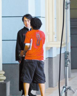 劇組凌晨4點(diǎn)從臺北出發(fā),6、7點(diǎn)到達(dá)山區(qū)后,馬上拍片,盡管當(dāng)時大雨滂沱,視線模糊,還是被媒體找到,這名工作人員開玩笑說,保密到家的消息竟然走漏,可見劇組有內(nèi)賊。