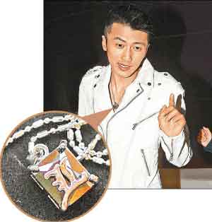 謝霆鋒前日出席新片《風(fēng)云II》記者會時,外界發(fā)現(xiàn)他的結(jié)婚戒指依然高調(diào)掛在脖子上,以證與太太張柏芝情不變。他同時還戴著一條刻上“L”字的項鏈,似要向裸照發(fā)放者“奇拿”說“不”!裸照風(fēng)暴發(fā)生后,網(wǎng)友慣以日本漫畫《死亡筆記》的“奇拿”去稱呼在網(wǎng)上發(fā)照片的神秘人;而在漫畫中,偵探L就是以緝捕“奇拿”為目標的。