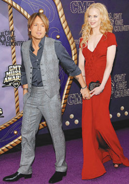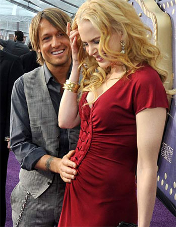 前天妮可·基德曼與凱斯·厄本連袂走上鄉(xiāng)村音樂電視獎(jiǎng)?lì)C獎(jiǎng)典禮紅地毯,兩人手牽著手顯得很親熱,凱斯·厄本還不時(shí)摸摸妮可·基德曼隆起的腹部,臉上洋溢準(zhǔn)爸爸的喜悅。