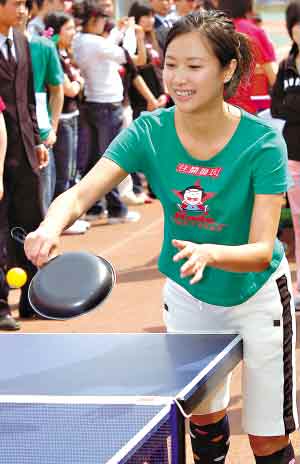 為了給自己的電子雜志《開啦》慶!耙恢軞q”生日,徐靜蕾前日召集顧長衛(wèi)、張揚以及霍思燕等圈內(nèi)好友在其母校舉行了一場“明星春季運動會”。親自擔任運動會總裁判的徐靜蕾,還親自參加了拔河、垃圾障礙跑等項目,并用煎雞蛋的平底鍋大秀乒乓球技,最終獲得乒乓球雙打的冠軍,十分活躍。