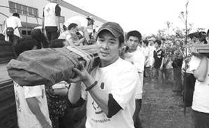 ·李連杰赴災(zāi)區(qū)一線 與壹基金志愿者扛帳篷(圖)