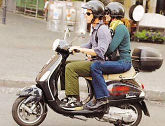 騎摩托逛羅馬 羅伯茨與老公體驗"平民浪漫"(圖)