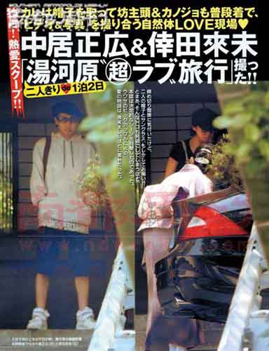 5月30日發(fā)售的《Friday》刊登了一組幸田來(lái)未和中居正廣共游溫泉?jiǎng)俚氐恼掌W?007年夏兩人傳緋聞以來(lái),這是媒體第一次拍到照片。幸田來(lái)未(25歲)和中居正廣(35歲),相差10歲的戀情堂而皇之地登上刊頭。