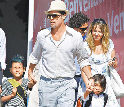 中新網(wǎng)8月28日電 布拉德·皮特昨日帶2名養(yǎng)子梅鐸斯和帕克斯到水城,外傳他將偕同女友安吉莉娜·茱莉(Angelina Jolie)出席威尼斯影展,但茱莉留在南法豪宅照顧新生兒與2個(gè)女兒,影迷想看她產(chǎn)后復(fù)出,可得再等。