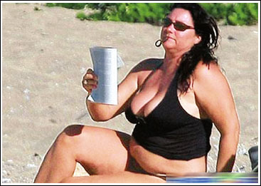 布魯斯南版的“詹姆斯·邦德”向來(lái)身邊靚女如云,但現(xiàn)實(shí)生活中,這位英國(guó)紳士只愛(ài)妻子——130公斤的肥婆姬麗·史密斯。54歲的布魯斯南于2001年迎娶了比他小10歲的第二任太太姬麗,但在為丈夫先后生下兩個(gè)兒子后,專心相夫教子的她身材走樣兒,到了海濱度假總被媒體驚呼“鯨魚擱淺”,但這全然不會(huì)動(dòng)搖她在布魯斯南心里的地位。上周在hawaii海灘,除了和老婆橫抱在一起旁若無(wú)人的熱吻以外,騎在一棵倒下的樹(shù)樁上看劇本的布魯斯南,還不時(shí)對(duì)著妻子做鬼臉只為博芳顏一笑。
