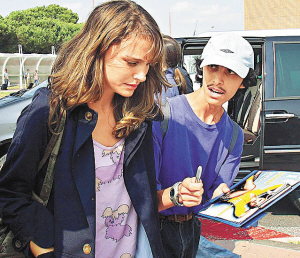 剛抵達就遇到索取簽名的影迷,波特曼很不耐煩。