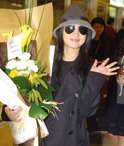 周迅昨日抵達(dá)桃園機(jī)場,準(zhǔn)備盛裝出席晚上的《畫皮》首映。