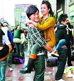 林依晨與“小綜”鄭元暢上周日為《我的億萬(wàn)面包》宣傳,在臺(tái)北車(chē)站前重現(xiàn)劇中的“情人擁抱大賽”,兩人還上臺(tái)示范抱抱姿勢(shì)。由于林依晨怕自己太重令小綜抱不起她,故意整天不敢吃東西。問(wèn)到兩人私下有沒(méi)有可能參加這類(lèi)比賽?林依晨說(shuō):“獎(jiǎng)金很吸引,但我較適合參加斗氣比賽。”小綜說(shuō):“我較適合參加大胃王比賽吧!”