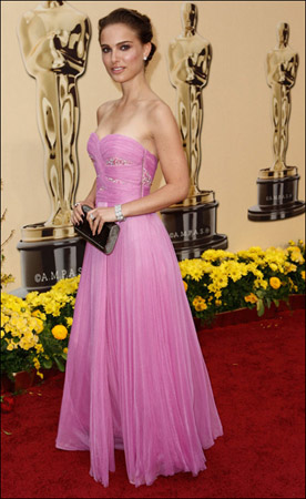 娜塔莉·波特曼粉紅晚裝甜美中帶著性感,十分漂亮 。
