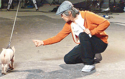 中新網(wǎng)3月3日電 日前,周星馳(星爺)秘密在香港為網(wǎng)絡(luò)游戲拍廣告片,平日星爺?shù)膹V告多有美女相伴,但這次只有小肥豬一只。而小肥豬拍攝期間又完全不受控制,要星爺施展渾身解數(shù)來(lái)逗它,大考星爺耐心。
