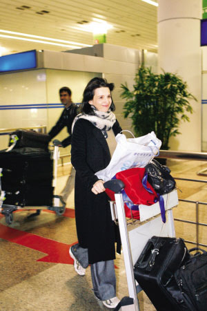 昨晚8時(shí)25分,奧斯卡得主、法國(guó)影星朱麗葉·比諾什由韓國(guó)首爾飛抵上海浦東國(guó)際機(jī)場(chǎng)。比諾什此次抵滬可謂十分低調(diào),現(xiàn)身機(jī)場(chǎng)時(shí)僅有一名男助理陪同。機(jī)場(chǎng)沒(méi)有影迷接機(jī),也沒(méi)有其他媒體來(lái)競(jìng)相采訪,接機(jī)的主辦方同樣沒(méi)有拿出顯眼的標(biāo)語(yǔ),現(xiàn)場(chǎng)十分冷清。
