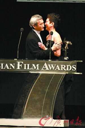 在發(fā)表感言時,說到動容時,徐克還擁抱并親吻了施南生。在后臺采訪時,施南生回吻了徐克一下。問他們是不是真情流露,施南生卻不愿承認,開玩笑說:“還不是為了攝影記者好拍,為人民服務!辈贿^臉色出賣了她,她依然一臉緋紅。