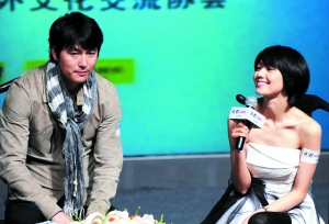 不過,鄭宇成與高圓圓語言不通,令人擔(dān)心戲外如何培養(yǎng)感情?高圓圓則解釋戲里他們談戀愛是用英語。高圓圓自言是鄭宇成的“粉絲”,對方也禮尚往來大夸高圓圓靚女,還稱贊她用韓語說的“成都,我愛你”很好聽。