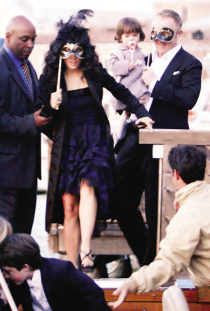 長達兩天的婚禮處處經(jīng)過精心布置。上周五,主人家按照傳統(tǒng),在威尼斯古跡海關(guān)大樓舉行了一場晚宴彩排以及假面舞會。海耶克、皮諾特帶著他們19個月大的女兒瓦倫蒂娜以及皮諾特與前妻的兒子,乘坐“水上巴士”抵達會場。無論是婚禮主角海耶克和皮諾特,還是塞隆等來賓均手持面具遮臉。