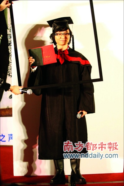 星海音樂(lè)學(xué)院2003屆最著名的學(xué)生周筆暢同學(xué),今年終于畢業(yè)了。昨日,在她的新專輯首發(fā)廣州站活動(dòng)上,就穿插了一場(chǎng)別開(kāi)生面的畢業(yè)典禮。穿著學(xué)士服的周筆暢,隆重地從老師手中接過(guò)了畢業(yè)證書,現(xiàn)場(chǎng)更架起了相框,拍起了畢業(yè)照。而當(dāng)日同期發(fā)行的兩張專輯《NOW》和《WOW》,也就成了周筆暢最有說(shuō)服力的一份畢業(yè)作品。