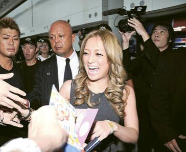 據(jù)香港《明報(bào)》報(bào)道,昨午2時(shí),身穿灰色貼身裙的濱崎步在10多名日籍工作人員護(hù)送下步出機(jī)場(chǎng),現(xiàn)場(chǎng)有逾百名粉絲迎接,主辦單位亦聘請(qǐng)50名保安筑起人墻。原本安排濱崎步經(jīng)VIP通道往上落客區(qū)乘車,但親民的她見(jiàn)到粉絲守候多時(shí),面露燦爛笑容之余,更主動(dòng)上前打招呼及握手。經(jīng)過(guò)一輪近距離接觸后,濱崎步一度收起笑容,似有心事,然后登車離開(kāi)。