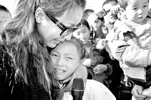 災(zāi)區(qū)女孩撲到孫悅懷中不愿讓她走