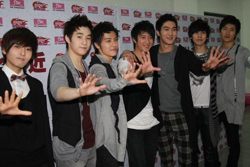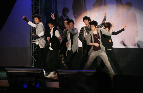 站在臺上的SJ-M7個成員,不時的互相交頭接耳,韓庚、始源的竊竊私語,東海、Henry的勾肩搭背,都成了令現(xiàn)場粉絲尖叫聲此起彼伏的導(dǎo)火線。