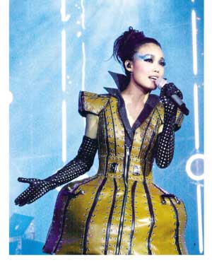 盡管有香港十四場(chǎng)、馬來(lái)西亞兩場(chǎng)、美加兩場(chǎng)的驕人成績(jī),但容祖兒對(duì)上海的演出絲毫不敢掉以輕心。演出前半部分就全新安排了國(guó)語(yǔ)歌翻唱環(huán)節(jié),以拉近與內(nèi)地歌迷的距離。王菲的《我愿意》、林憶蓮的《至少還有你》,特別是張惠妹的《聽(tīng)!,高音飆到令全場(chǎng)尖叫,成為對(duì)容祖兒唱功的最好證明。她笑言:“這些歌平時(shí)只有在K歌時(shí)才會(huì)唱,今天是第一次在舞臺(tái)上表演。”