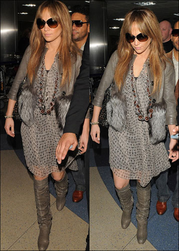 詹妮弗·洛佩茲實(shí)在是太漂亮了!結(jié)束了自己的日本宣傳活動(dòng),匆匆回國的詹妮弗·洛佩茲在機(jī)場大大的高貴了一把,灰白黑色的雪紡紗連身長裙浪漫飄逸,外面為了保暖配了皮質(zhì)外套,但是袖口處的毛毛設(shè)計(jì)極致奢華高貴,大釘子書包混搭效果明顯,大配飾項(xiàng)鏈真是好看~~小編覺得喜歡這樣浪漫奢華的MM們一定要學(xué)習(xí)學(xué)習(xí),保證是回頭率300%。