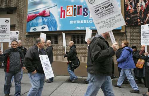 這是當(dāng)?shù)氐奈枧_人員工會首次采取罷工行動。紐約市長彭博說他已經(jīng)和劇院負(fù)責(zé)人和舞臺人員對話。彭博說,雖然這是私人勞工糾紛,但所造成的經(jīng)濟影響甚廣,也遠(yuǎn)超只是關(guān)閉劇院一天的影響。他表示市政府會繼續(xù)準(zhǔn)備提供任何協(xié)助。