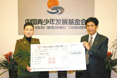 昨天下午,譚晶悄然來到了中國青少年發(fā)展基金會,現(xiàn)場捐贈人民幣10萬元。