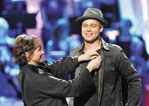皮特出場時,現(xiàn)場觀眾掌聲雷動,不過當(dāng)他開腔講話時,麥克風(fēng)竟然失靈,令場面一度尷尬,幸好節(jié)目并非現(xiàn)場直播。