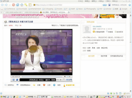 在這段19秒的視頻中可以看到,片頭剛出現(xiàn)“奧運進行時”的標題,背景畫面是福娃舉著火炬奔跑過長城、鳥巢,接著便插入了廣告。問題出現(xiàn)在第14秒,鏡頭突然切到了女主播對鏡梳妝的畫面,當時女主播拿著鏡子正在整理頭發(fā),那面大鏡子在整個屏幕上相當?shù)膿屟郏嬅娌畈欢嘤幸幻腌姷臅r間。或許是導播發(fā)現(xiàn)了失誤,立刻將畫面切回到正常廣告中……一定是忙中出錯,切換到廣告的鏡頭居然鬼使神差地再一次回到了女主播身上,依然還拿著鏡子。在女主播兩次不合時宜的出鏡之后,節(jié)目才恢復了正常。貼出這段視頻的網(wǎng)友放炮說:“6月30日晚23點34分,《奧運進行時》播出前,突然鏡頭閃了一下,出現(xiàn)女主持拿著鏡子在整理頭發(fā)。而且還一連兩次呢!怎么CCTV又出錯了呢?”在強大的網(wǎng)友面前,央視的失誤似乎無地隱藏。對于央視又一次的穿幫,不少網(wǎng)友都顯得習以為常的樣子,直接用各種的表情進行回復,也有個別網(wǎng)友表示這次的問題出在導播身上,不要老是拿主持人說事。