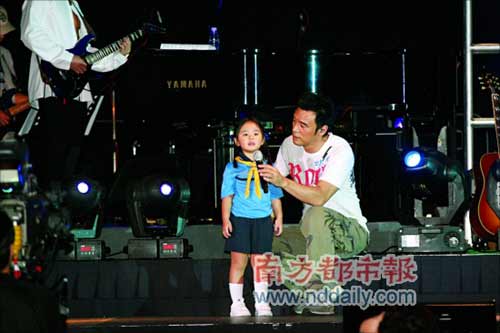 鐘鎮(zhèn)濤的女兒鐘懿是新加入的幼齡女童軍,父女同唱,場(chǎng)面感人。
