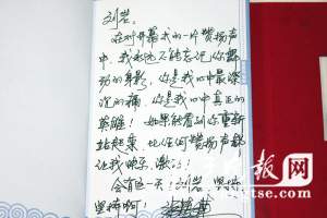 細(xì)心詢問病情,關(guān)心治療情況,三大導(dǎo)演在問候劉巖之后,不斷地勉勵這位著名的舞者增強與病魔作斗爭的信念。張藝謀還特別帶來了他在四張節(jié)目單和紀(jì)念冊上贈給劉巖的題字: