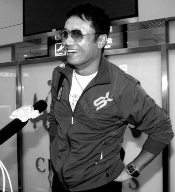 昨日,苗僑偉、成奎安、泰迪羅賓等三十幾位來渝參加足球表演賽的香港明星乘坐CA0420從香港飛來重慶,風采依舊,戴著茶色墨鏡的帥哥苗僑偉一出關便被記者逮了個正著。苗僑偉和善地停下了腳步跟記者打招呼。巧的是,本報特派香港記者張悅斯與苗僑偉同機抵渝。張悅斯透露,苗僑偉跟其他明星不同,只有他一個人坐的頭等艙A1的位置,一位貌似助手的男子陪同他坐在A3的位置并替他牢牢拉住隔擋的簾布,飛行全程兩人都用粵語交談著。張悅斯曾試圖找苗僑偉采訪,但立馬被空姐發(fā)現攔了下來。