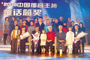 昨晚,由中國廣播電視協(xié)會(huì)、天津廣播電視電影集團(tuán)主辦,中廣協(xié)會(huì)播音主持委員會(huì)、天津電視臺(tái)、天津人民廣播電臺(tái)協(xié)辦的’2008中國播音主持“金話筒”獎(jiǎng)?lì)C獎(jiǎng)盛典在天津?qū)氎鎱^(qū)京津新城舉行。頒獎(jiǎng)晚會(huì)由央視主持人白巖松和天津電視臺(tái)主持人李宗瑤主持。