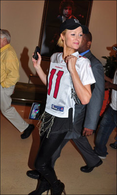 北京時(shí)間2月2日(北美時(shí)間2月1日),美國(guó)大型體育盛況超級(jí)碗在眾多明星的歌唱中緩緩的拉開了序幕,臺(tái)上明星璀璨,臺(tái)下更是星光熠熠,當(dāng)天晚上(2月2日)記者就拍到了豪門名媛帕麗斯·希爾頓。當(dāng)晚的帕麗斯·希爾頓身穿一身運(yùn)動(dòng)服裝,但是仍然難掩甜美性感,據(jù)悉當(dāng)晚希爾頓就程飛機(jī)飛回了英國(guó)倫敦。
