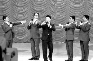 昨晚,央視2009年元宵晚會(huì)如期播出。由于是錄播,所以“我最喜歡的春節(jié)聯(lián)歡晚會(huì)節(jié)目”評(píng)選也已提前揭曉,《不差錢》拿下小品類一等獎(jiǎng),劉謙也奪得曲藝類一等獎(jiǎng)(本報(bào)昨日已報(bào)道)。在元宵晚會(huì)上,小沈陽(yáng)和劉謙的名字反復(fù)被眾多明星提及,而劉謙、朱軍更是模仿小沈陽(yáng)的音調(diào),引來陣陣笑聲。