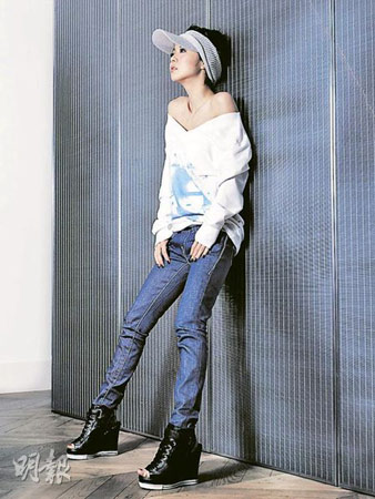 據(jù)香港《明報》報道,薛凱琪預(yù)測今年中性風(fēng)將會大行其道,將略帶寬闊的仔褲,卷起褲管,配上平底皮鞋或色彩鮮艷的高跟鞋,英氣中滲出濃厚的少女味,又或是穿上寬闊的上衣,配襯窄身褲及船底鞋。