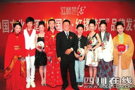 “天上掉下個林妹妹!似一朵輕云剛出岫。只道他腹內(nèi)草莽人輕浮,卻原來骨格清奇非俗流!弊蛉障挛2時,在成都某五星級酒店會議大廳,四川宜賓紅樓夢酒業(yè)集團(tuán)隆重舉行了全國“紅樓夢酒”發(fā)布會。著名制片人李小婉率新版《紅樓夢》寶、黛、釵、妙玉、探春、襲人等龐大明星陣容,身穿“戲裝”首次亮相成都,為“紅樓夢酒”推廣造勢。